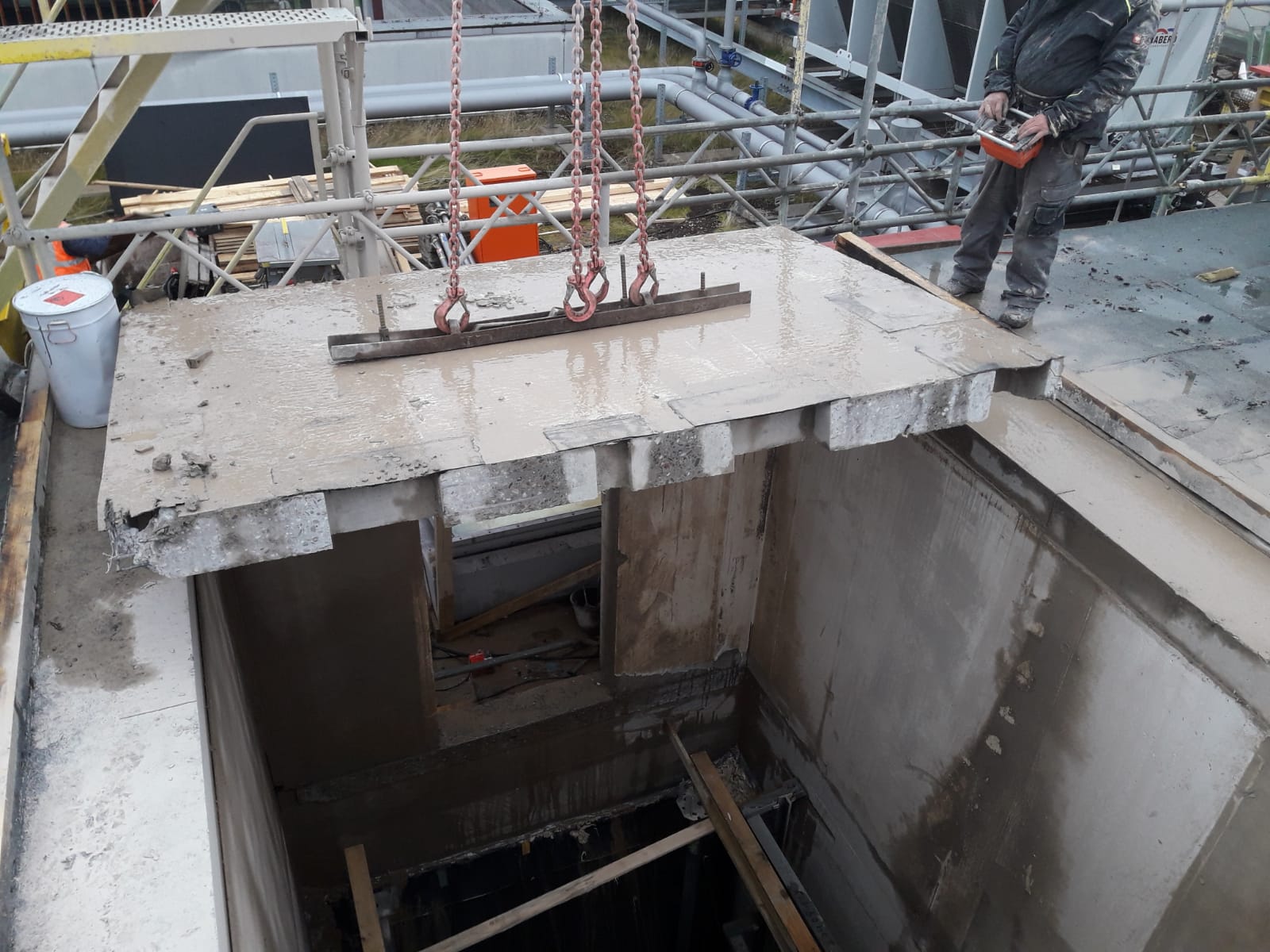 Abbruch Maschinenraumdecke und Dachdecke einer bestehenden Aufzugsanlage im 5.OG im Herzzentrum.